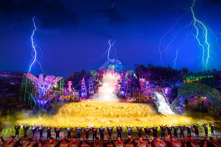宋城以“建筑为形,文化为魂”为经营理念,仿宋代风格建造,主体建筑依据北宋画家张择端的长卷《清明上河图》而建,并按照宋书《营造法式》建造,还原了宋代都市风貌,是杭州市第一个反映两宋文化内涵的主题公园,年接待游客超过1000万。大型歌舞《宋城千古情》是宋城的灵魂,与拉斯维加斯的O秀、巴黎红磨坊并称“世界三大名秀”。