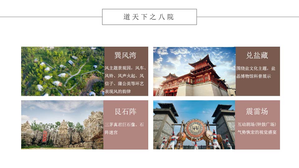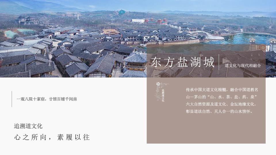 | 17:30 | 游玩景点: 东方盐湖城 【东方盐湖城】全家度假胜地,道天下景区将呈现出江南山镇的独特项目形态,建筑布局依山而建,充分结合山型地貌,将建筑与山体融为一体,并突出生态环保的规划理念,注重对原生态山水的保护和利用,旅游产品策划结合茅山千年的道文化精髓,在文化展示、互动体验等方面创意出新,将带给游客“不一样”的全家体验之旅。 |