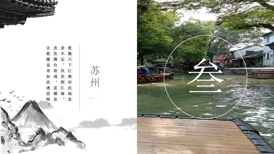 | 13:30 | 游玩景点:木渎 【木渎】江南园林水乡古镇、乾隆下江南民间行宫(游览时间约90分钟)严家花园看木渎首富严国馨之宅,四季花园、民间奇石、尚贤堂等揽江南之精品建筑;乘摇橹小船游香溪,御码头下,游虹饮山房(乾隆民间行宫)看龙椅、江南圣旨馆(了解苏州之文人)、大清官俗厅、科举展览馆、一代神秀——沈寿纪念馆等。 |