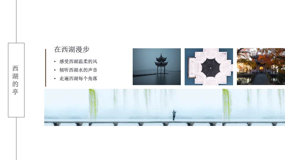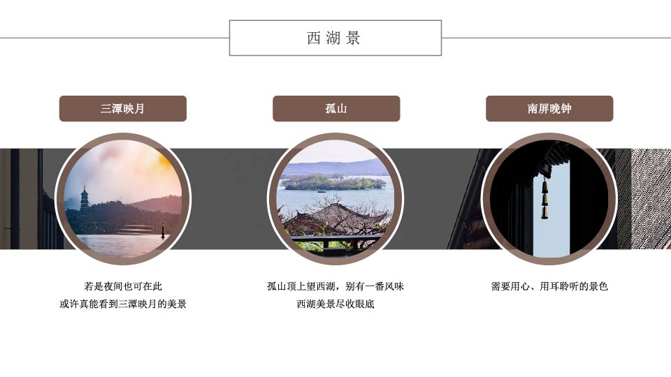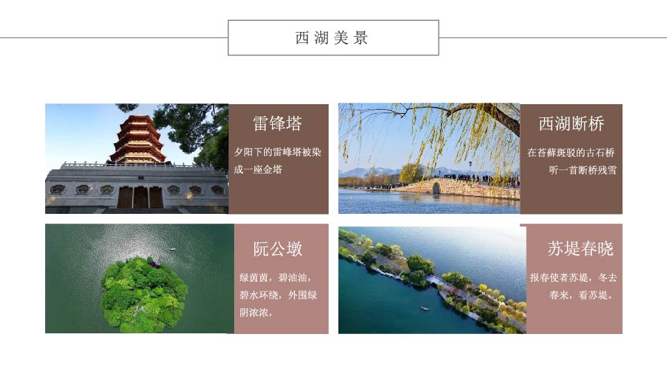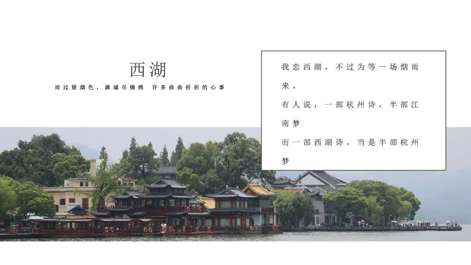 | 13:30 | 游玩景点:西湖 【漫步西湖】(游览时间约1.5小时),可观赏西湖风光——湖心亭、三潭映月、孤山、阮公墩、苏堤春晓、断桥、远观雷峰塔等景点【花港观鱼或柳浪闻莺】红鱼池、古碑亭等,观赏梅家坞万亩茶园, 享用农家乐餐 温馨提示:西湖风景区有交通观光船提供,游客可根据自己的喜好选择,自愿乘坐,自理55元/人。涉及黄金周、节假日、周末西湖风景区旅游大巴车禁止进入,客人需要换乘景区公交车,自理单趟2元/人,往返4元/人,如需包车200元—400元/趟,最多限乘50人,具体当天以景区安排为准,敬请谅解! |