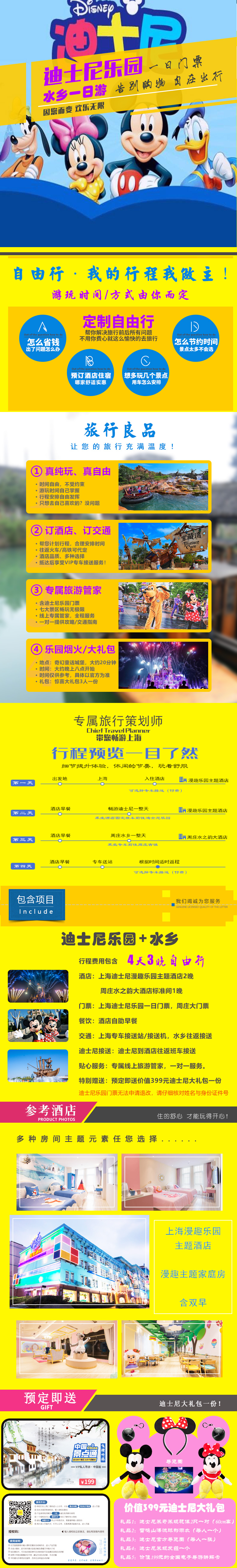 赠送:迪士尼大礼包1间1份:包含迪士尼玩偶一对,雨衣按人数送,电子讲解卡一张,发箍一个,导览图。