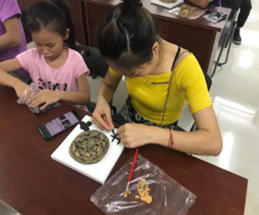 10:30-11:30 根据同学自己设计的图纸,动手制作瓦当、着色